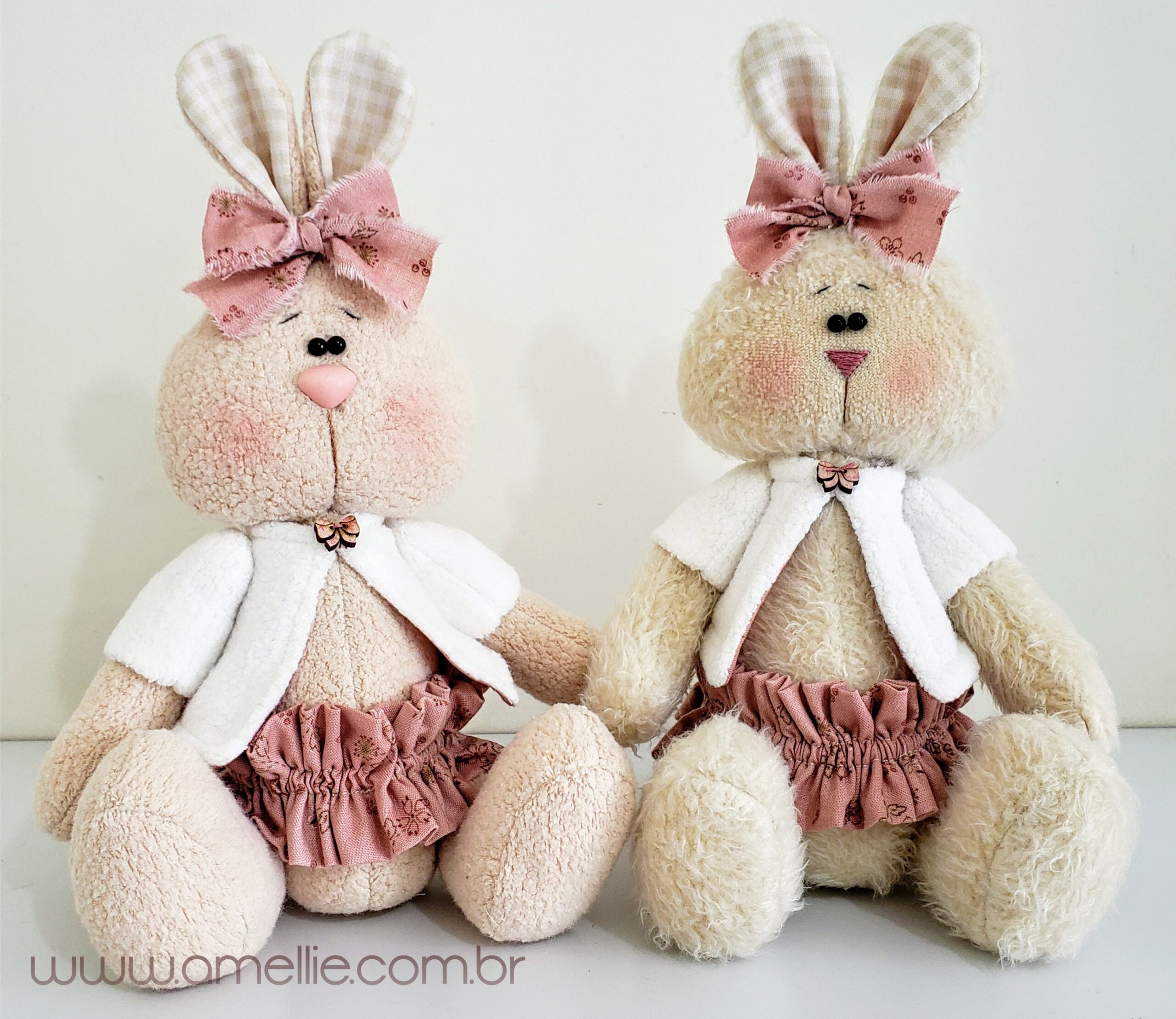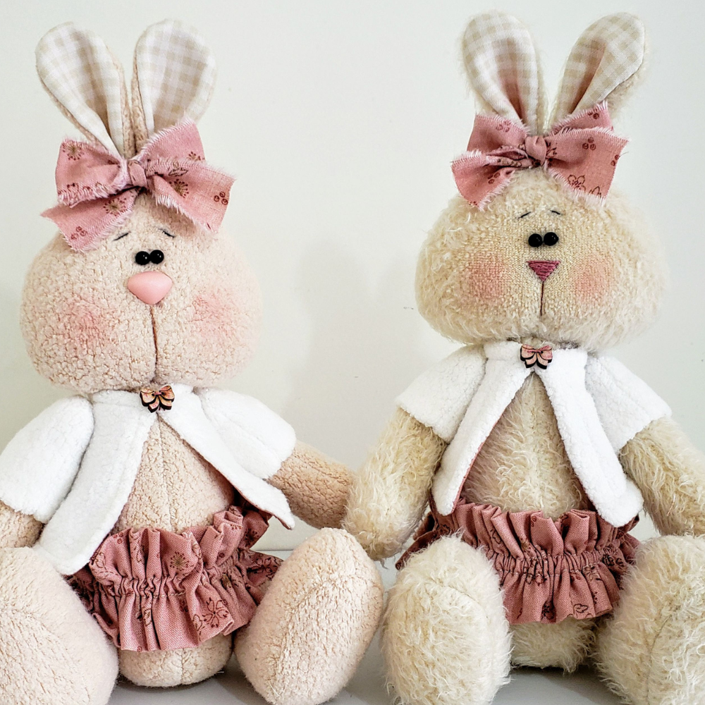 Use diferentes tipos de tecido para dar personalidade aos seus coelhinhos! Melton, uniflock, algodão ou malha são ótimas opções.
