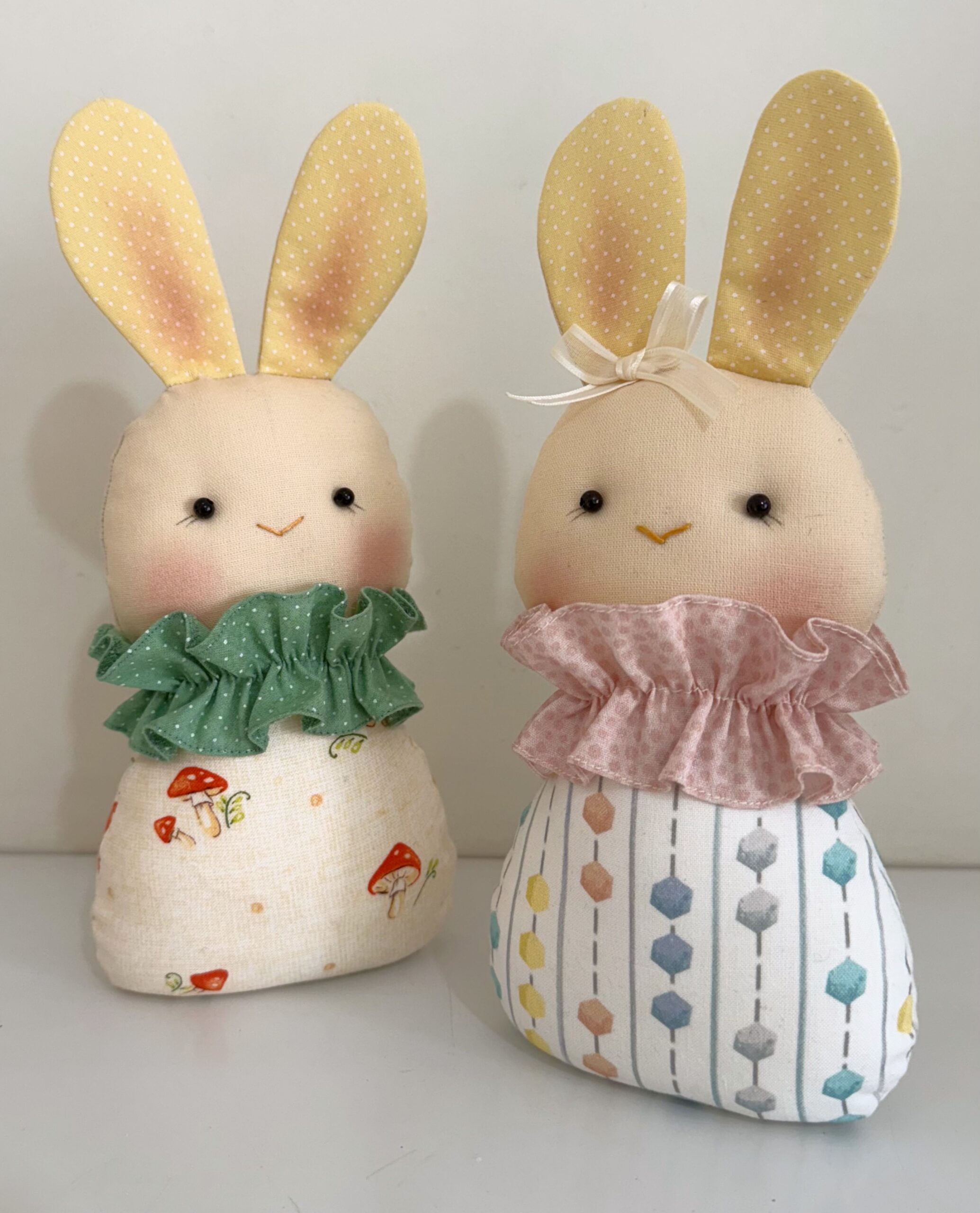 Use diferentes tipos de tecido para dar personalidade aos seus coelhinhos! Algodão, linho, flanela ou malha são ótimas opções. Além disso, é uma excelente forma de aproveitar retalhos que você já tem guardados.