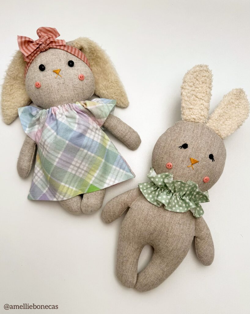Use diferentes tipos de tecido para dar personalidade aos seus coelhinhos! Melton, uniflock, algodão ou malha são ótimas opções.