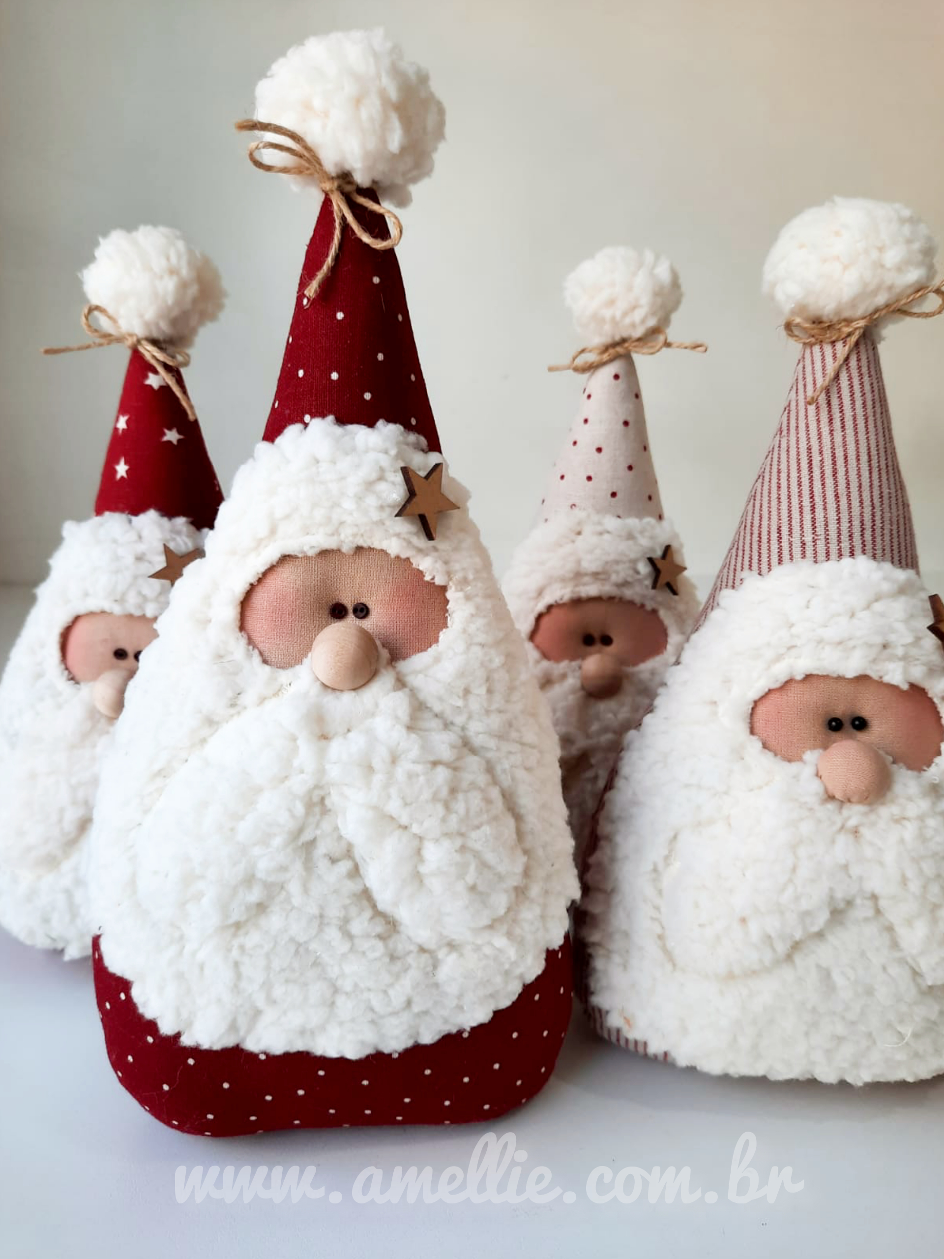 Molde digital em PDF para criar um Papai Noel fofo feito em tricoline. Fácil de costurar e perfeito para decorar ou presentear no Natal. ✨